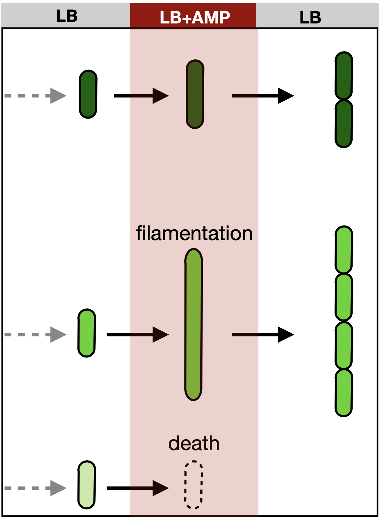 Control model: E. coli K12 MG1655 was used, carrying the \(pBADgfp2\), \(araC\), and the \(bla_{TEM-1}\) integrated into the chromosome through the \(λ-phage\).